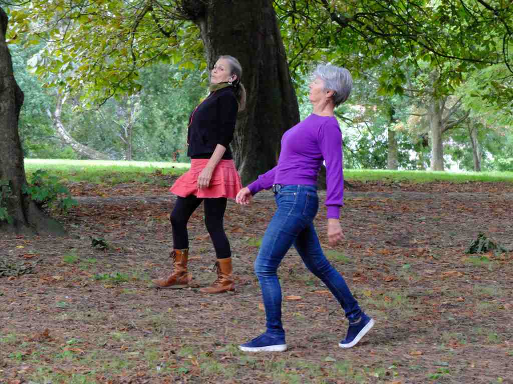 Sunday Walk is an outcome of a research project undertaken by Dr Louise Ritchie from the Department of Theatre, Film and Television, Aberystwyth University entitled Duet for another time… in which she asks how it might be possible to create physical performance whilst adhering to government regulations for proximity and touch. How has the experience of Covid-19 changed spatial and interactional understandings? What adaptations are now necessary? What will physical practice look and feel like?